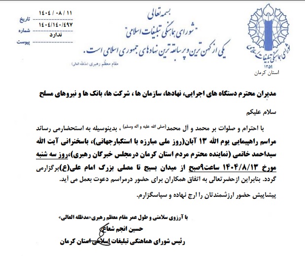 ٠٩:١٠ - دوشنبه ١٢ آبان ١٤٠٤ / عدد : ٥٥٤٣ / تعداد نمایش : ٤٨ |